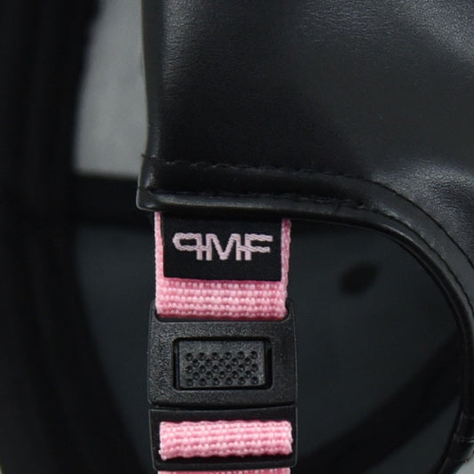"Why Pink?" - Black Leather Cap w/ Pink Strapback